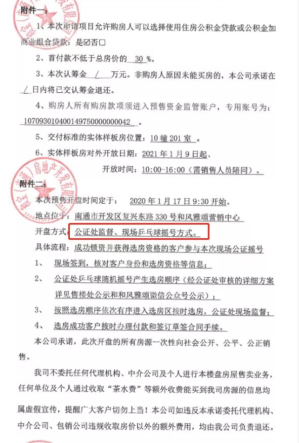 本次申请项目允许购房人可以选择使用住房公积金贷款或公积金加商业组合贷款,首付款不低于总房价的30%,将于2021年1月17日9时30分在和风雅颂营销中心采取公证处监督、现场乒乓球摇号方式进行预售开盘。