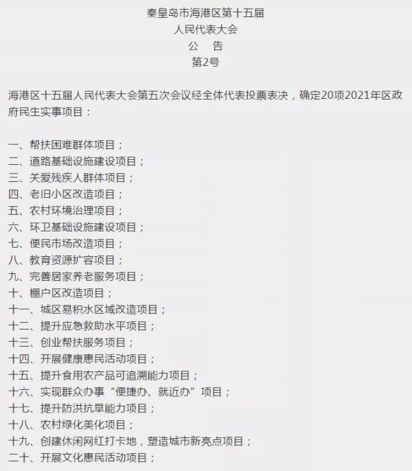 秦皇岛海港区20项民生实事项目,定了!