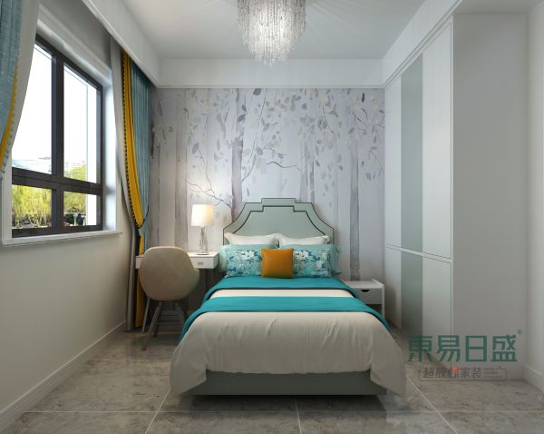简洁大方的床头背景墙壁纸,尽显创意。清新的蓝色和干净的白色的搭配,使房间显得清爽不失浪漫。