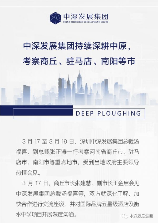 中深发展集团持续深耕中原,考察商丘、驻马店、南阳等市