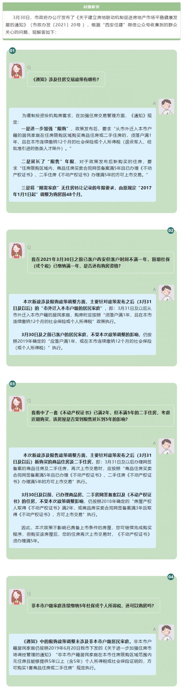 西安住建局解读楼市新政:3月30日之前已落户居民家庭不受本次政策调整影响