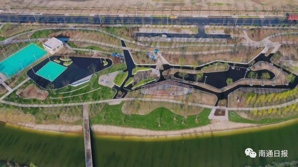 府南生态长廊是海门创新南城极具文化韵味的一颗生态明珠,东至长江路,西至张謇大道,南至上海路,北至东布洲路,绿化面积约27.5万平方米。