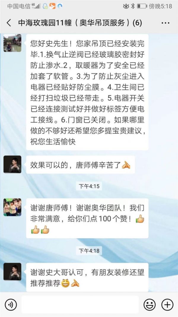 每一个满意的背后都包含了奥华每一个服务人员的汗水。奥华将会以更优质的服务去回馈每一位信赖我们的家庭!
