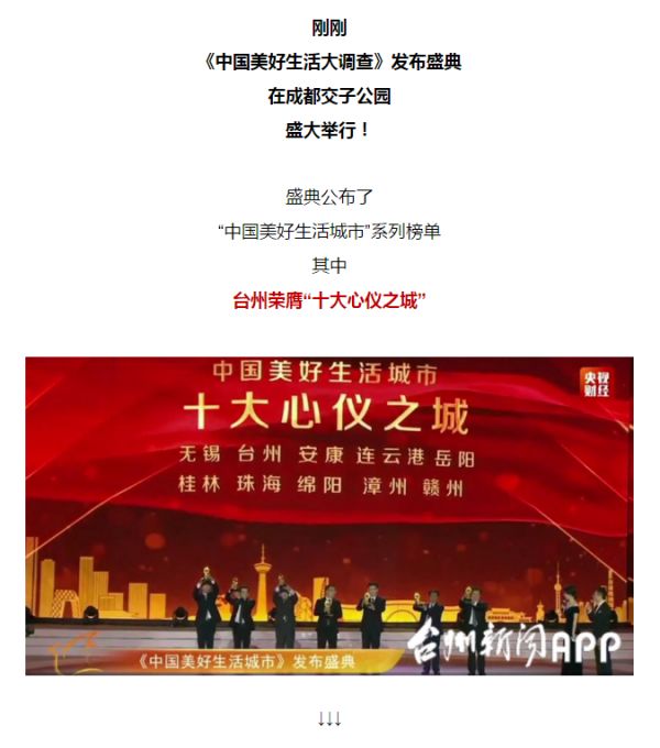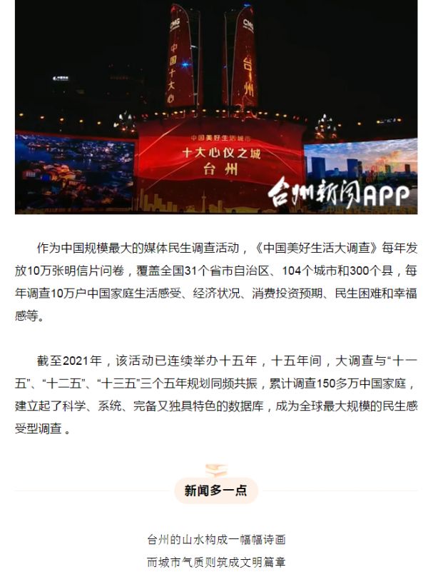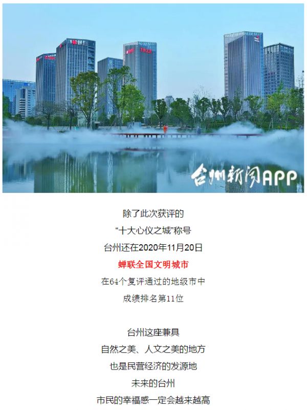 台州荣膺“十大心仪之城”!“中国美好生活城市”系列榜单公布