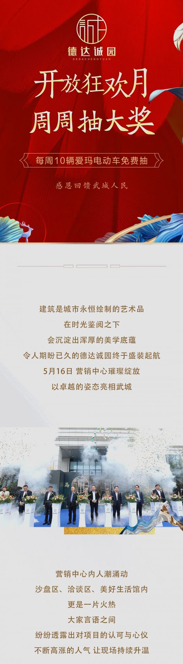 德达诚园 开放狂欢月 爱玛电动车周周免费抽 !