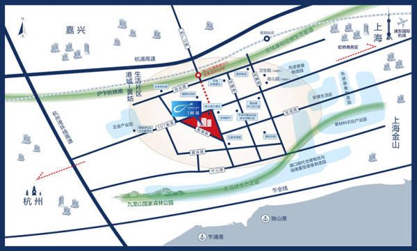 紧邻沪乍杭铁路,实现上海杭州零距离。立体交通枢纽站——经跨海大桥直达宁波,周边沈海高速、沪昆高速、杭州湾绕城高速环绕,约15分钟接驳上海繁华,未来高铁、高速、城市主干道构架的TOD模式,联通世界,启幕全球时区生活。