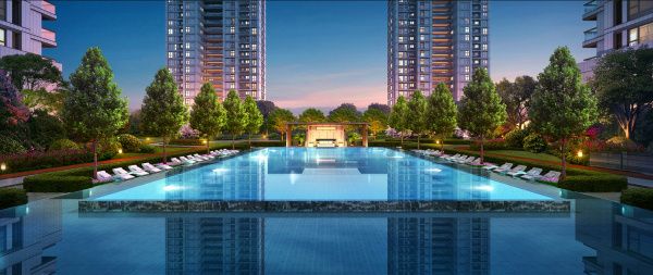 向世界传扬东方栖居文化。提取江南建筑中粉墙黛瓦屋檐等元素,广泛运用颇具水墨意境的材料,以江南风格打造容积率约1.6的低密住区,